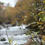 A kunyhó a folyóra néz. Zuhanyzó, fürdőlepedők és törölközők találhatók a fürdőszobában.